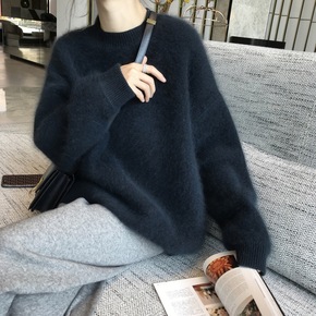 2020新款加厚宽松慵懒风仿貂毛毛衣女水貂绒套头针...