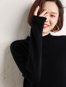 气质半高领羊绒衫女秋冬加厚宽松慵懒毛衣显瘦百搭针织...