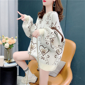 2022秋冬新款雪尼尔仿貂中长款加厚毛衣打底衫宽松...