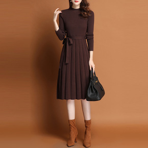 大码针织连衣裙女早春圣诞版年新款女装冬装打底春季上...
