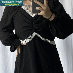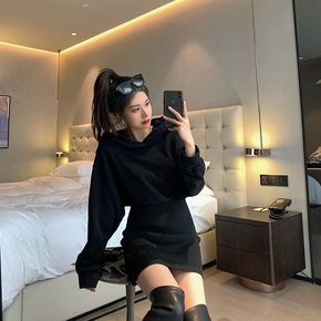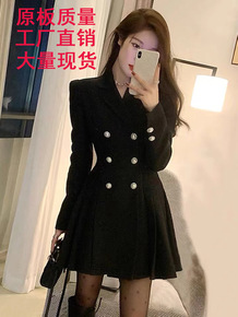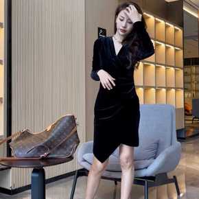 2021秋冬装轻熟风炸街辣甜女装修身包臀黑色小个子...