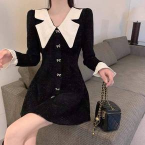 春季小香风打底连衣裙子女秋冬装2022年新款时尚气...