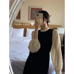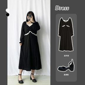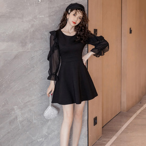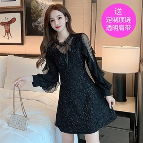 笨笨家黑色打底连衣裙女秋冬装2021年新款小个子配...