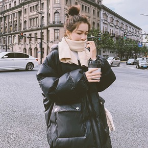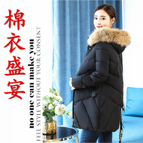 时尚韩版工装棉服冬季女式中长款面包服反季大码宽松连...