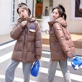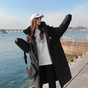 2022冬装新款韩国复古宽松显瘦中长款连帽棉衣学生...