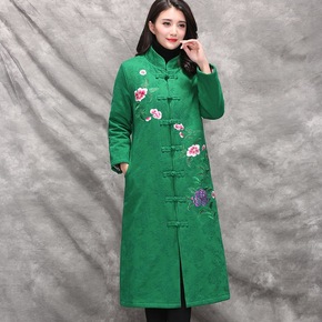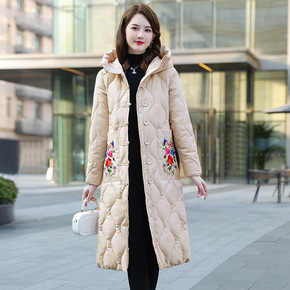 2022年秋冬装新款女民族风刺绣连帽中长款羽绒棉盘...