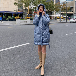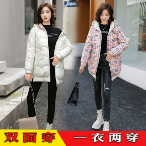 双面穿亮面免洗2022冬季新款中长款羽绒棉衣潮连帽...