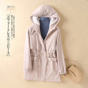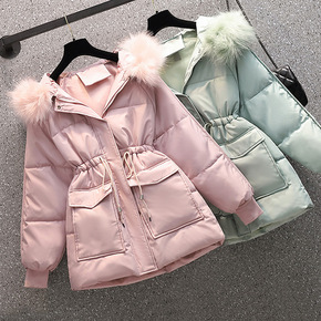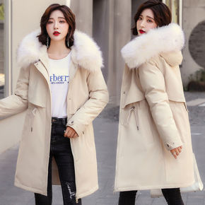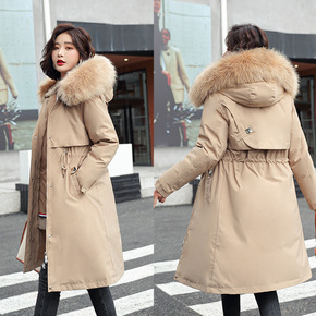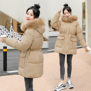 2022中长款毛领连帽派克服棉袄女冬季新款收腰抽绳...