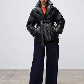2021年冬季新款韩版系带收腰保暖时尚棉服中长款连...