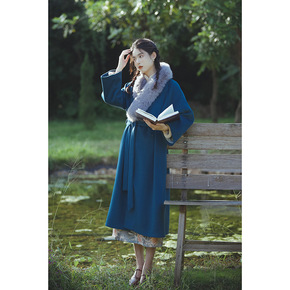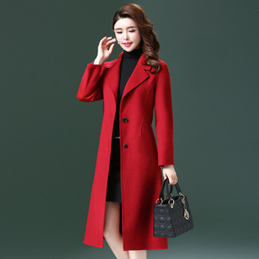 时尚新款毛呢大衣 欧美西装领一粒扣长款冬季毛呢外套...