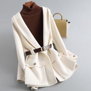双面羊毛绒毛呢子大衣女 2021年秋冬装新款韩版外...