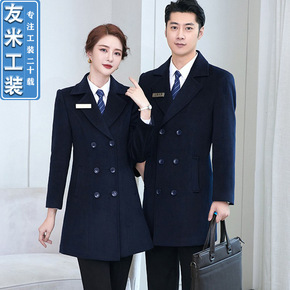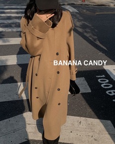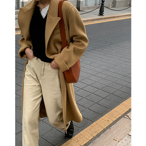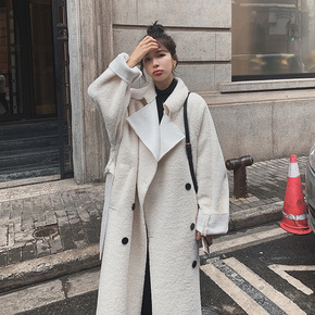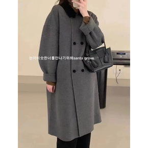 韩国东大门设计师款秋冬新款撞色拼接双排扣双面呢羊绒...