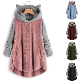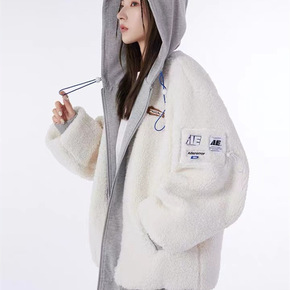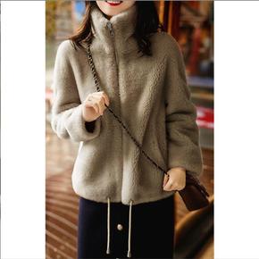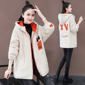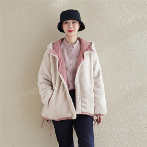 2020冬文艺女装 加厚羊羔毛连帽短外套双面穿毛外...