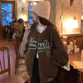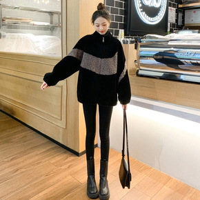 2021女士冬季新款宽松羊羔绒拉链大衣外套时尚休闲...
