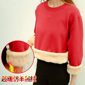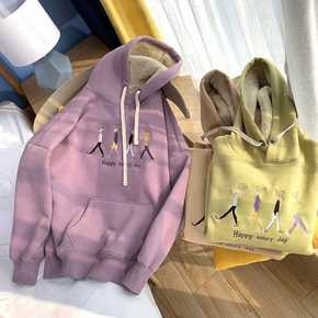 羊羔绒连帽卫衣女秋冬大码学生保暖棉衣加绒加厚套头外...