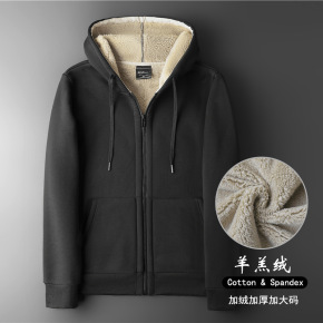 跨境秋冬羊羔绒开衫大码卫衣男式运动上衣加绒加厚连帽...
