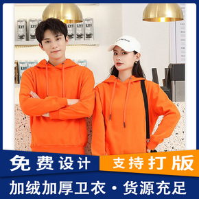 加绒加厚纯色广告连帽卫衣印制logo企业工作服班服...