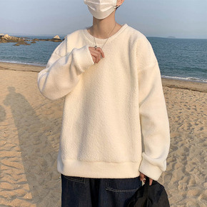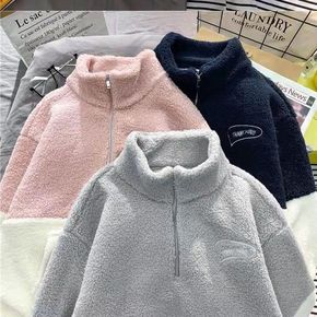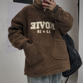 羊羔绒口袋卫衣休闲复古bf男女情侣宽松立领上衣卫衣...