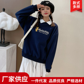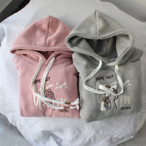 冬新款大码宽松休闲韩版连帽卫衣女实拍摇粒绒刺绣字母...