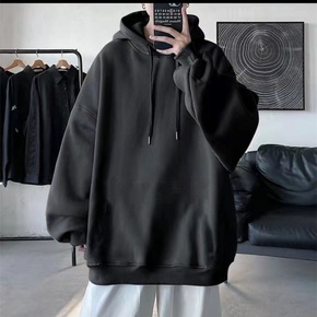 毛绒卫衣男加厚纯色加绒连帽上衣情侣秋冬装学生百搭套...