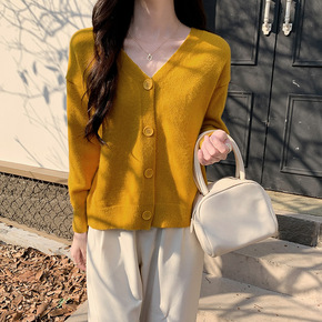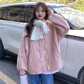 开衫针织外套女2022秋冬新款软糯宽松慵懒风加厚毛...