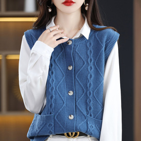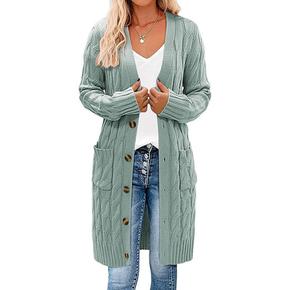 2022跨境亚马逊秋冬新款单排扣麻花口袋纯色针织长...