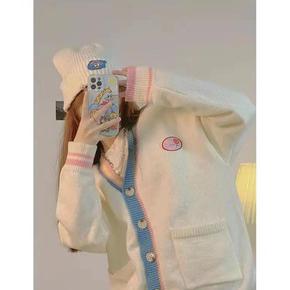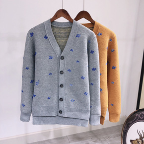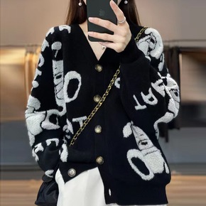 秋冬新款毛巾绣羊毛开衫女V领时尚慵懒风宽松百搭针织...