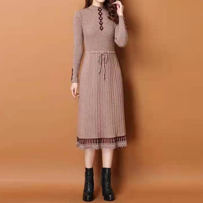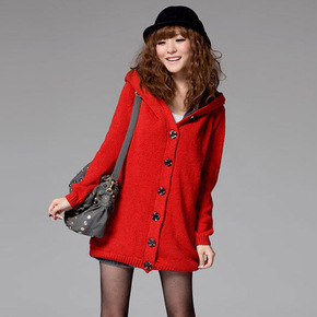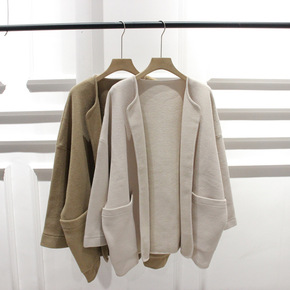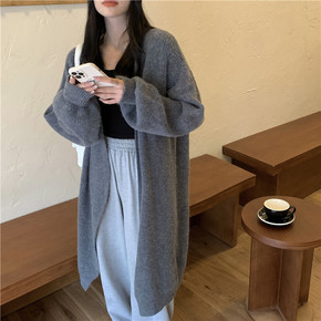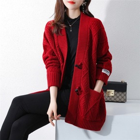 秋冬装新款宽松休闲大口袋设计针织开衫中长款毛衣外套...