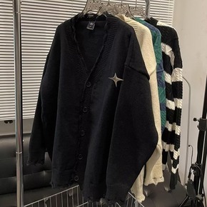 慵懒风毛衣开衫女秋冬新款宽松加厚亮纱毛衣外套女...