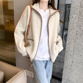 秋季高领毛衣外套女开衫慵懒风宽松休闲秋冬装软糯针织...