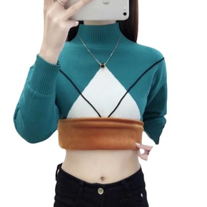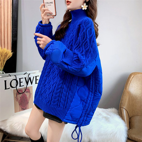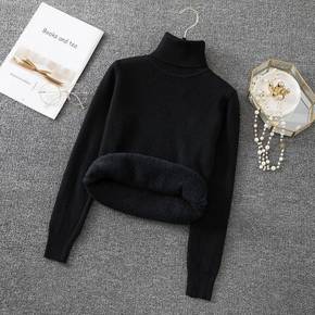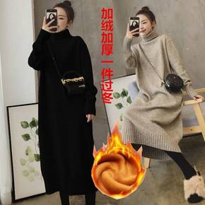 高领中长款毛衣女2021款秋冬宽松加绒加厚打底内搭...
