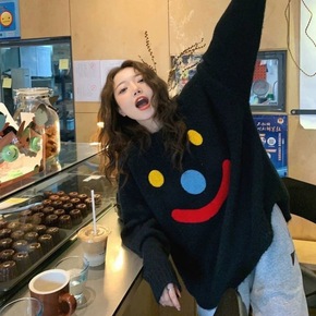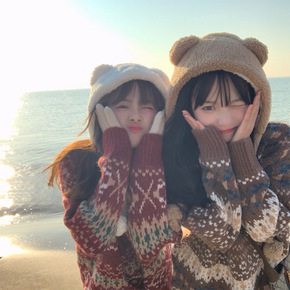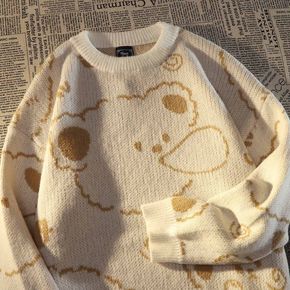 日系复古vintage小熊加厚毛衣女秋冬新款宽松慵...