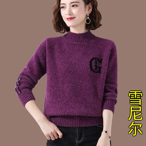 雪尼尔毛衣女秋冬2021新款女装套头针织上衣内搭加...