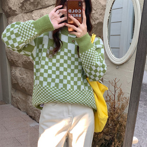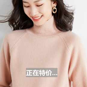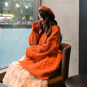 韩国羊毛衫女宽松慵懒羊毛针织高领大码纯色加厚打底毛...