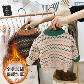 宝宝加绒毛衣韩版童装男女小童线衫儿童洋气加厚套头针...