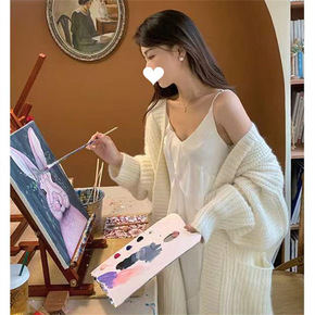 2022早春新款加厚中长款针织开衫女慵懒宽松时尚洋...