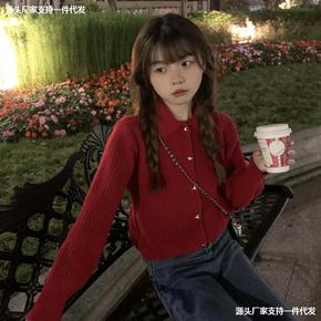 冬季新品 圣诞红色毛衣女秋冬季慵懒风内搭打底针织开...