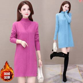 加绒/不加绒秋冬季新款中长款毛衣女韩版宽松半高领针...