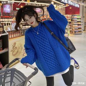 克莱因蓝毛衣秋冬2021新款慵懒风闺蜜装麻花加厚外...