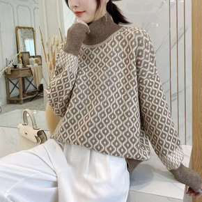 娃娃领毛衣女士宽松外穿秋冬季2021新款加厚民族风...