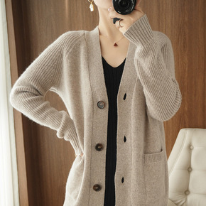 太系列 20秋冬装新品 韩范中长羊毛针织衫女V领宽...