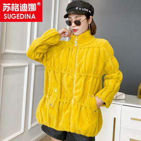 仿水貂绒外套加厚毛衣女立领宽松针织衫2019冬季拉...