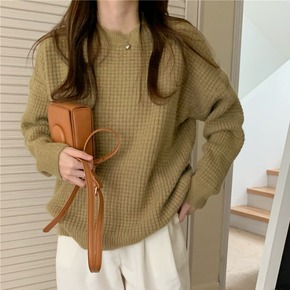 2021秋冬新款圆领针织衫女士韩版套头毛衣短款修身...