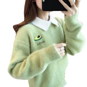 加绒/不加绒 仿水貂绒加厚毛衣女秋冬宽松针织衫套头...