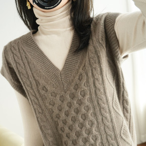 秋冬新款加厚毛衣女宽松大版大码慵懒风麻花套头中长款...