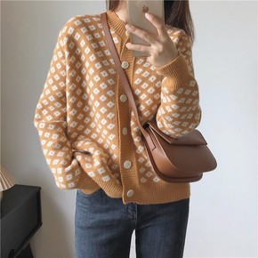 开衫加厚慵懒秋冬季毛衣外穿外套风女宽松针织衫复古亲...