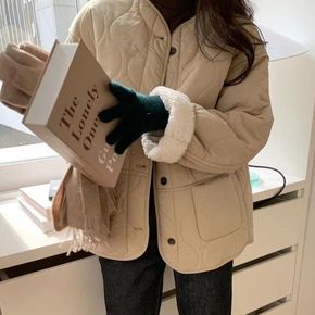 韩国新款羊羔毛宽松休闲加绒加厚保暖棉衣外套女潮in...