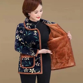 中老年女装棉衣短款翻领保暖加绒加厚奶奶冬装外套花棉...