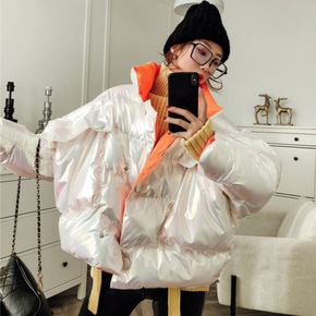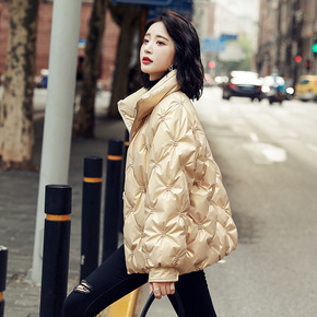 亮面棉服女蝙蝠袖冬装2021新款短款宽松韩版棉衣i...