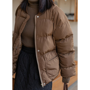 韩风短款大口袋圆领蓬松棉衣女2021冬季宽松面包服...